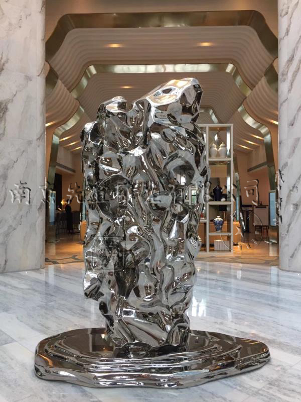 南京先登雕塑廠專業制作不銹鋼鏡面光抽象假山石雕塑,高度一般在3米以內,區別于一般的假山石,為不銹鋼鍛造,表面采用鏡面拋光工藝;用于裝飾酒店大堂、會所、房地產售樓部等,配合燈光起到烘托環境的效果。