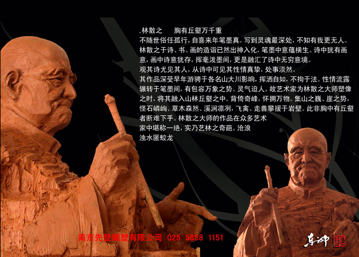 不隨世俗任孤行,自喜來年筆墨真。寫到靈魂最深處,不知有我更無人。   林散之于詩、書、畫的造詣已然出神入化,筆墨中意蘊橫生。詩中猶有畫意,畫中詩意猶存,揮毫潑墨間,更是融匯了詩中無窮意境。   觀其詩尤見其人,從詩中可見其性情真摯,處事淡然。其作品深受早年游騁于各名山大川影響,揮灑自如,不拘于法。性情流露輾轉于筆墨間,有包容萬象之勢。靈氣迫人。   故藝術家為林散之大師塑像之時,將其融入山林丘壑之中。背倚奇峰,懷擁萬物。集山之巍、崖之勢,怪石嶙峋、草木森然、溪澗凜冽,飛禽、走獸攀援于巖壁。此非胸中有丘壑者斷難下手。   林散之大師的作品在眾多藝術家中堪稱一絕,實乃藝林之奇葩。滄浪濁水匿蛟龍