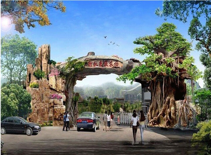 假樹大門 大型門頭 假山門頭 仿真古樹景區塑石山門水泥設計施工